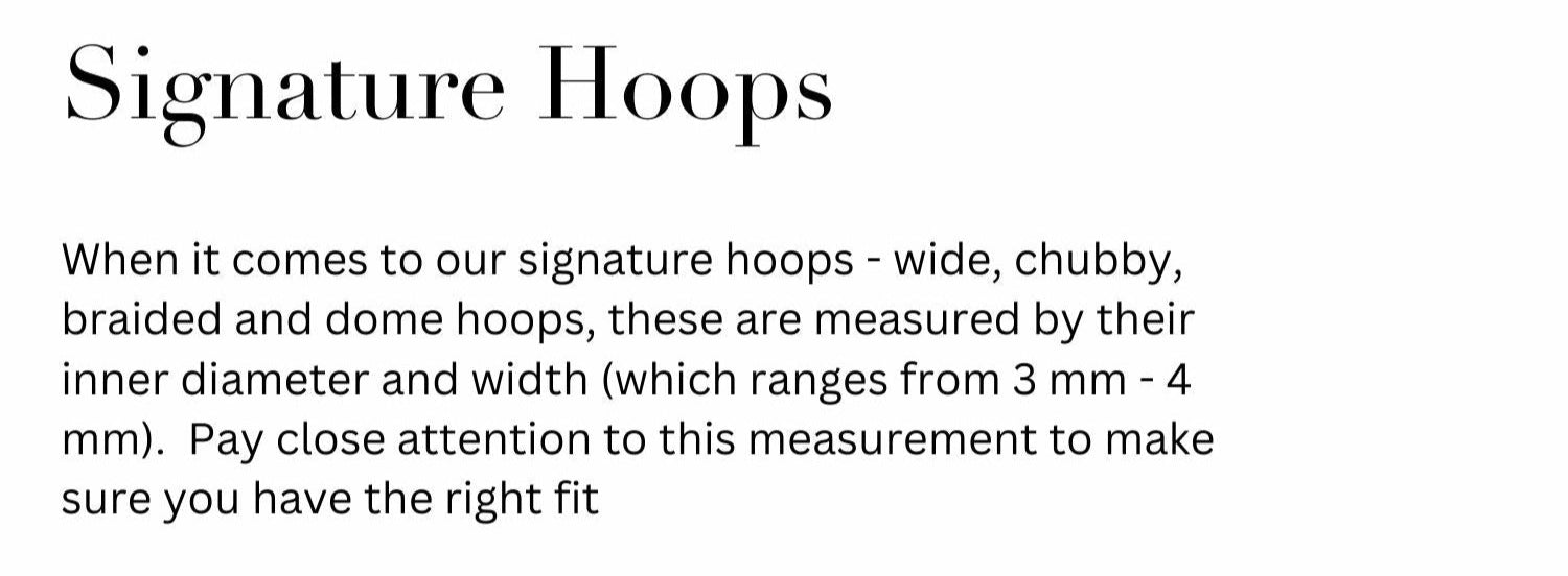 We created a 15 mm, 13 mm, 11 mm and 9 mm to fit every person's need for the perfect hoop styling.