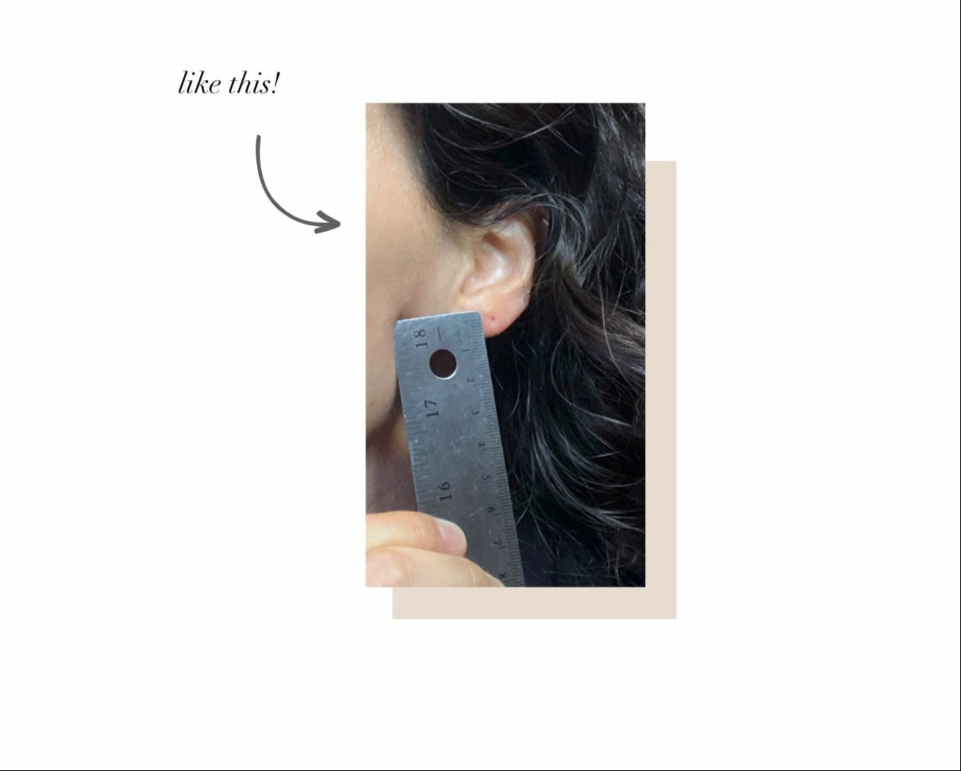 If you don't have a ruler in mm, you can always measure with another increment and convert it online. Another way is to use a string, piece of floss, or a piece of paper to maker where your piercing starts and your lobe ends. Then you can measure that item to accurately estimate what size will be best for you.