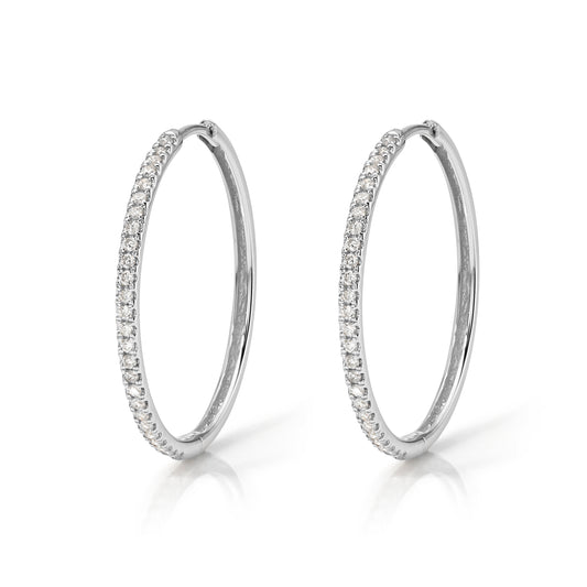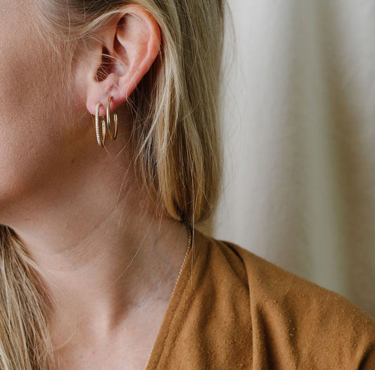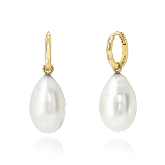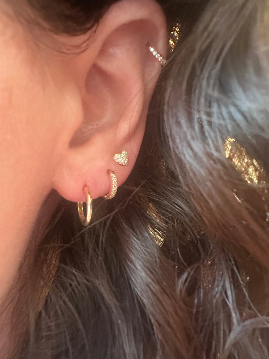 Huggie Hoop with White Diamond Briolette - 9 mm