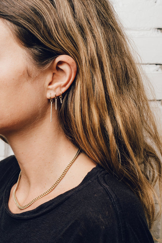 Huggie Hoop with Black Diamond Briolette - 11 mm