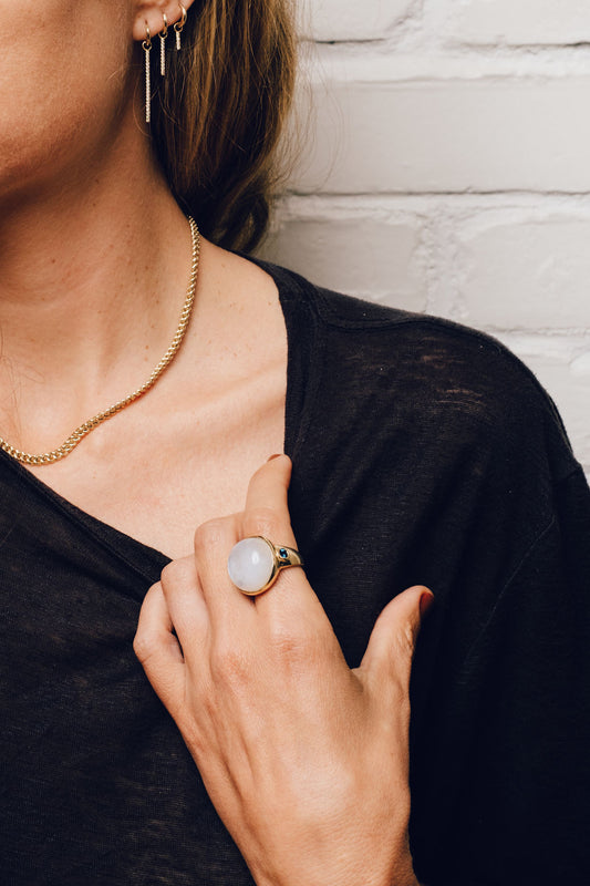 Huggie Hoop with Gray Diamond Briolette - 9 mm