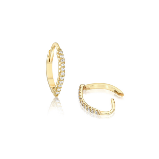 Wide Huggie Hoops with Scattered Diamonds - 11 mm