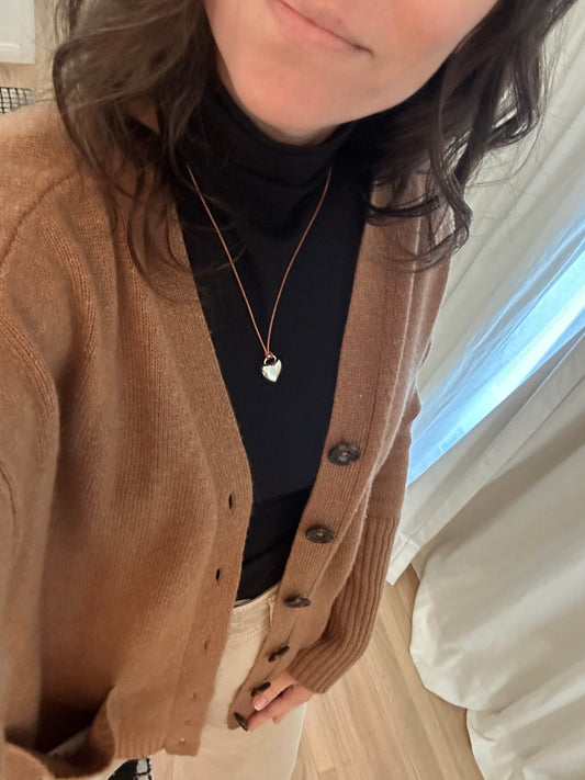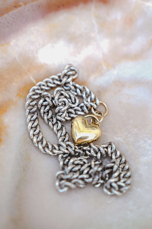 Puffy Heart Large on Leather Cord - Sterling Silver
