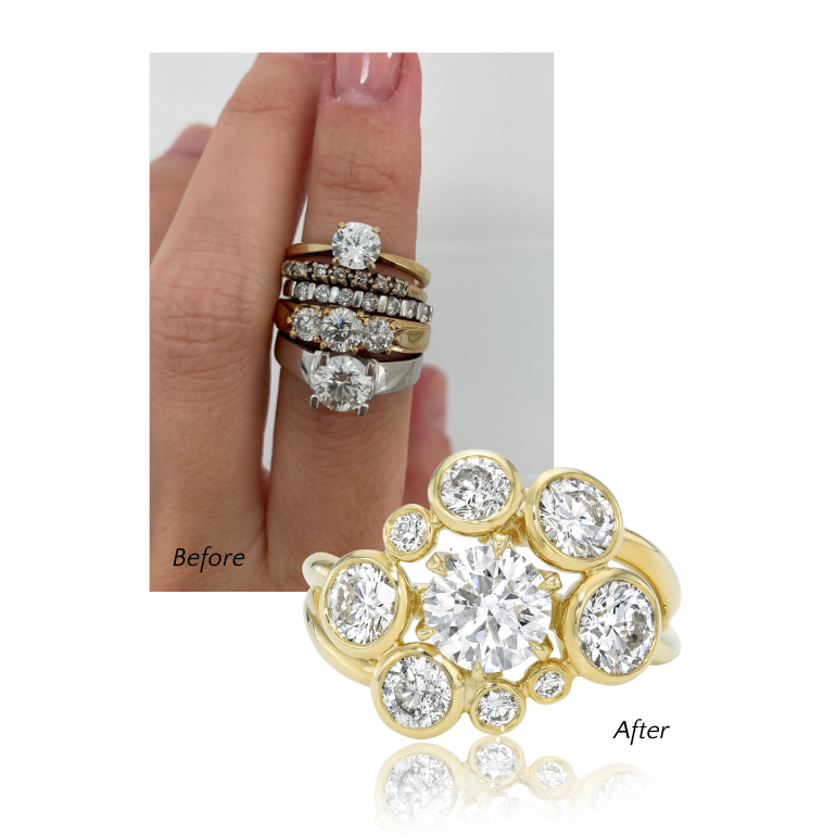 Jewelry tells the story of a family. If you’d like to breathe new life into sentimental pieces, our Heirloom Reimagined service transforms your gold and stones into something fresh and enduring. We begin with the same intake process as our bespoke work, then explore custom design directions tailored to you.