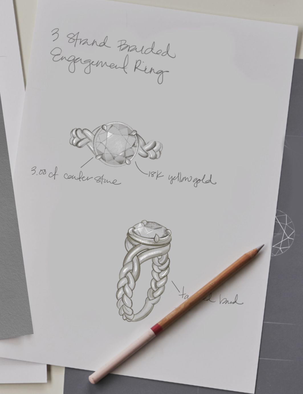 We begin with initial inspiration - an event, an idea, a feeling. We do research: browsing images to pinpoint the elements of design you love. From rendering to wax model to final form — we are side-by-side in the design process. The result is a future heirloom that’s striking, unexpected, and one-of-a-kind.