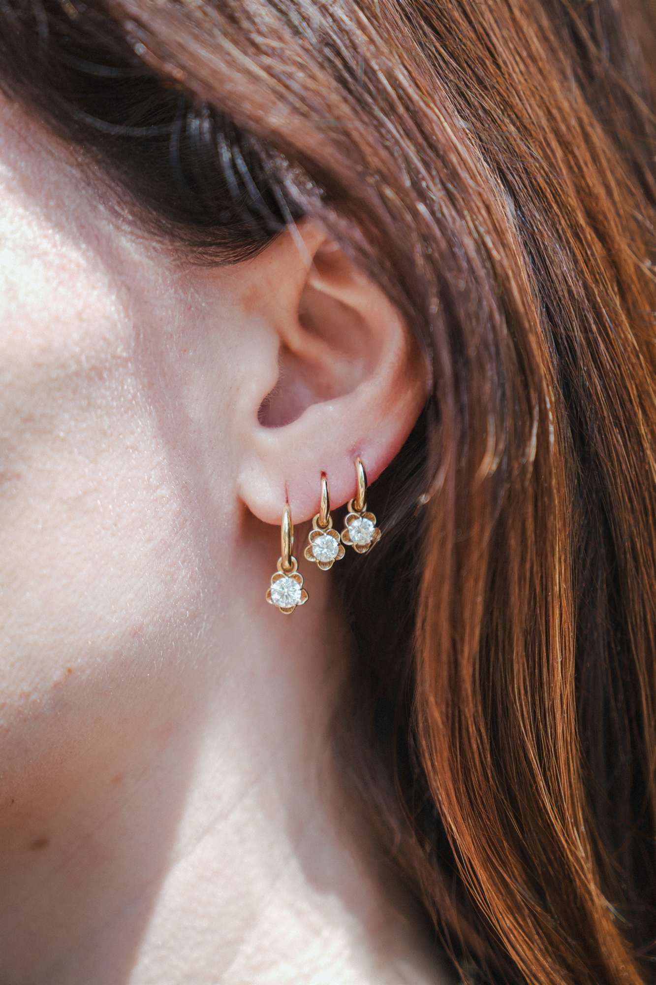 Inspired by the floral designs that appeared during the Art Nouveau period - a time that embraced individuality after the socially restrictive 19th Century. These earrings display diamonds set in warm 18K yellow gold encircled with a textured flower shape.