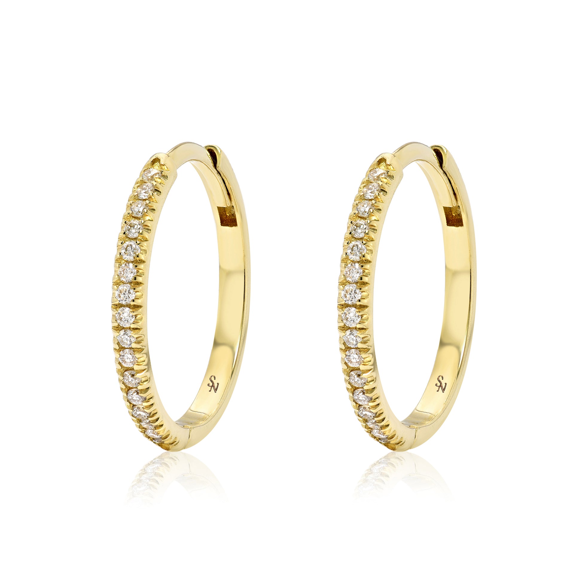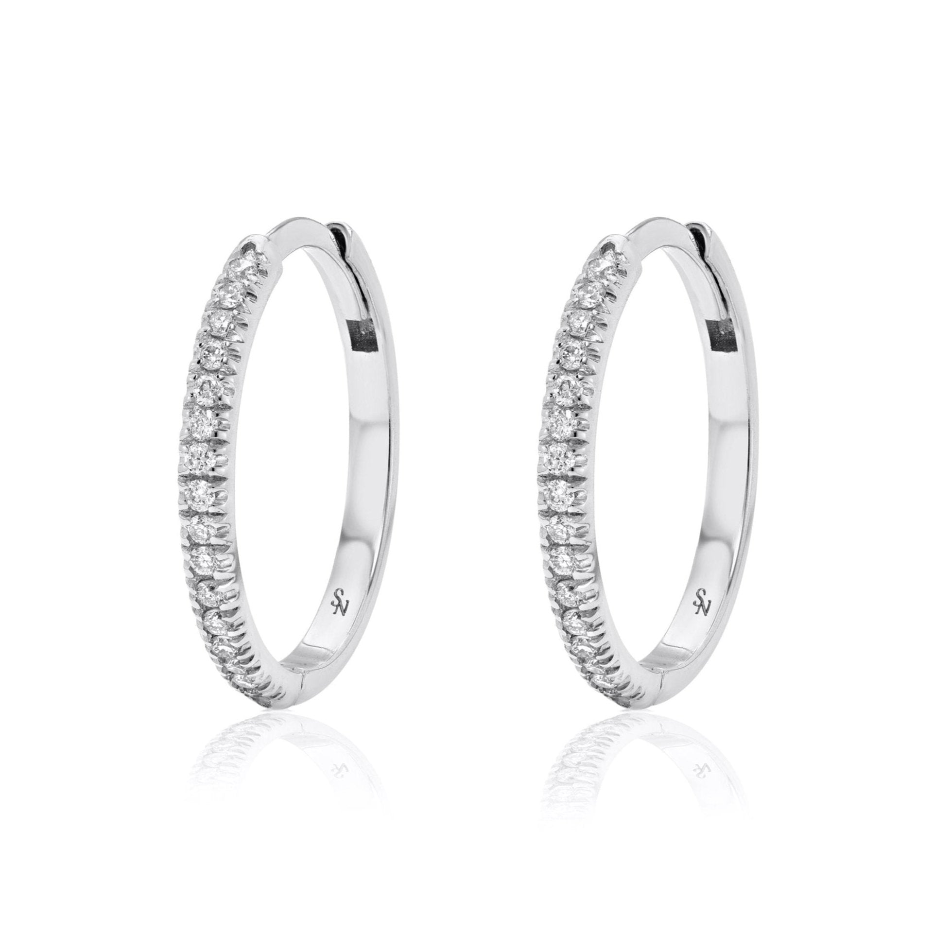 - 16 round brilliant VS G/H diamonds ≈ 0.10 ct per hoop (0.20 ct pair)