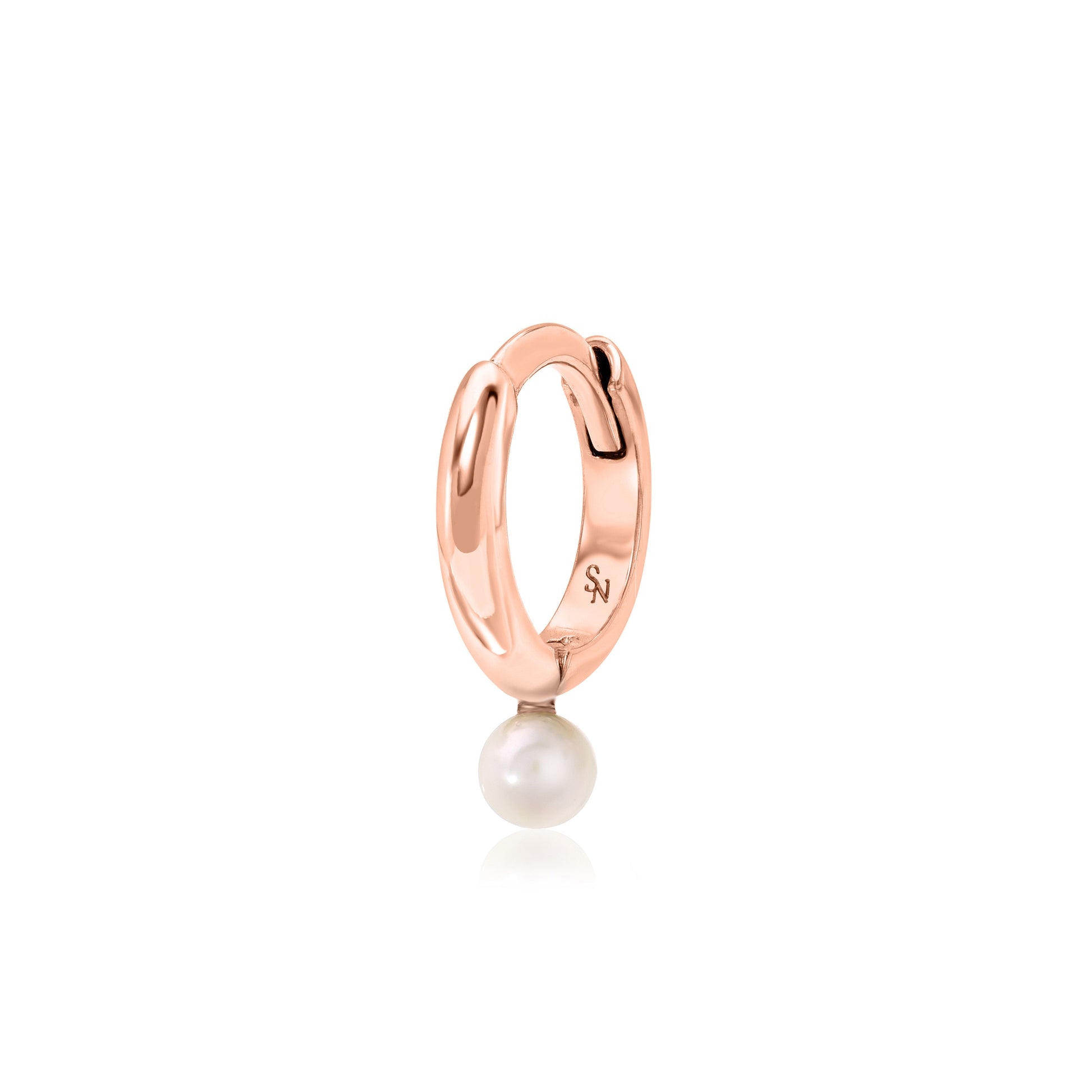 A 4 mm freshwater pearl is suspended from a solid 18 K gold huggie, crafted with a precision-engineered hinge that clicks securely closed with a smooth, satisfying feel.
